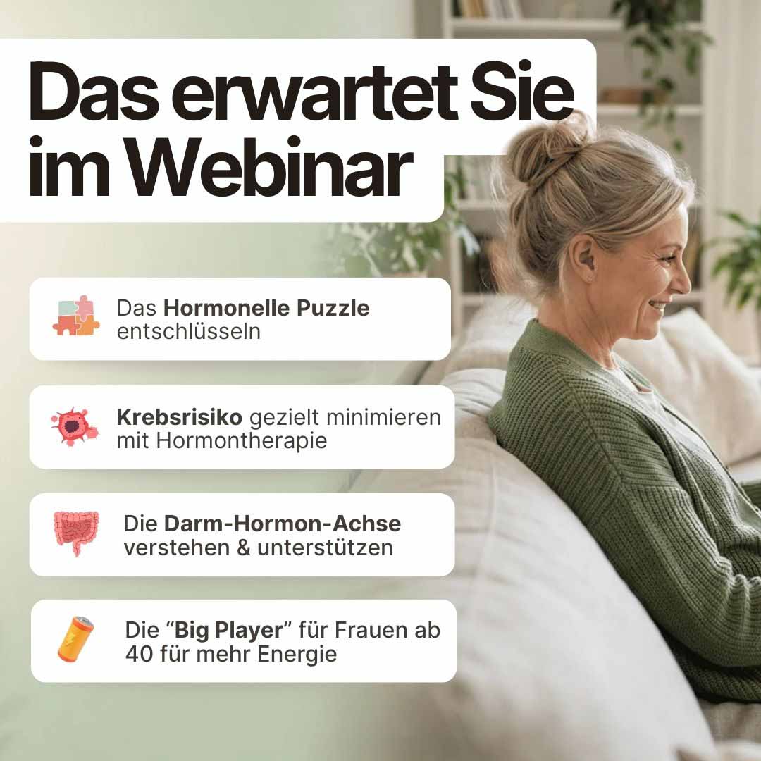 • Sinnvoll ergänzen, aber richtig: Erfahren Sie, wann der Einsatz welcher Hormone wirklich sinnvoll ist und wie eine natürliche und sichere Ergänzung aussehen kann, um Defizite auszugleichen.
