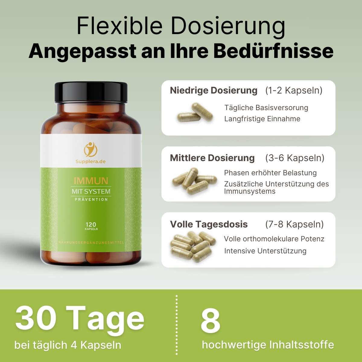 Wie ist die flexible Dosierung von 1 bis 8 Kapseln pro Tag zu verstehen?