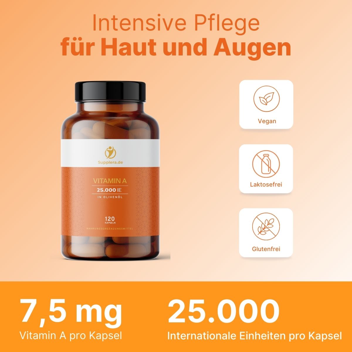 Die Menge der Kapseln, die Sie benötigen, kann von Person zu Person sehr unterschiedlich sein. Für Menschen mit einem ganz geringen Mangel kann alle 10 Tage 1 Kapsel Supplera Vitamin A bereits ausreichend sein.